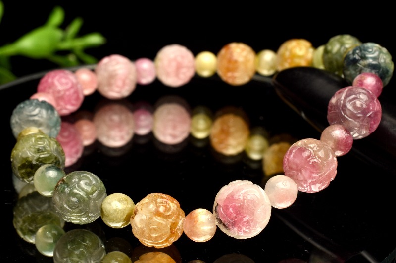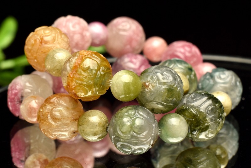 【1点物】AA☆レアカラー入り! ウォーターメロントルマリン 8(丸玉5)mm マニ車 ブレスレット _MA9133