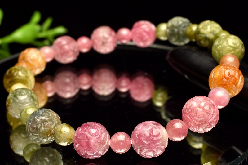 【1点物】AA☆レアカラー入り! ウォーターメロントルマリン 8.5(丸玉5)mm マニ車 ブレスレット _MA9135