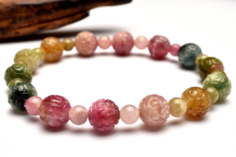 【1点物】AA☆レアカラー入り! ウォーターメロントルマリン 8(丸玉5)mm マニ車 ブレスレット _MA9137