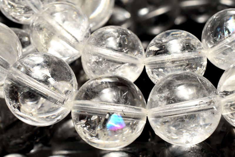 透明度が高く、稀にクラックが虹色に輝く珠がございます。