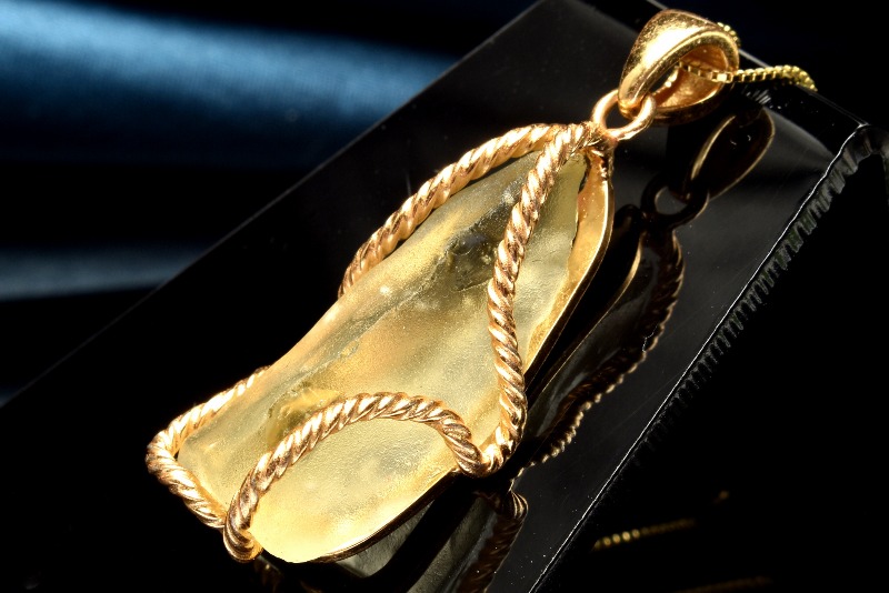 内部に鉄やニッケル等の隕石成分が混ざって発見されることもあるそうです。丸い気泡がバラバラに混在している中、溶融時に流れた模様が穏やかであることから、瞬時にしてガラス化したことがわかります。
