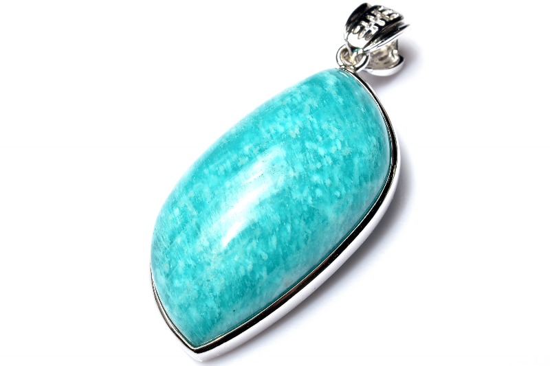 アマゾナイトのブルーとシルバー枠の相性が良く上品な印象のペンダントトップです。