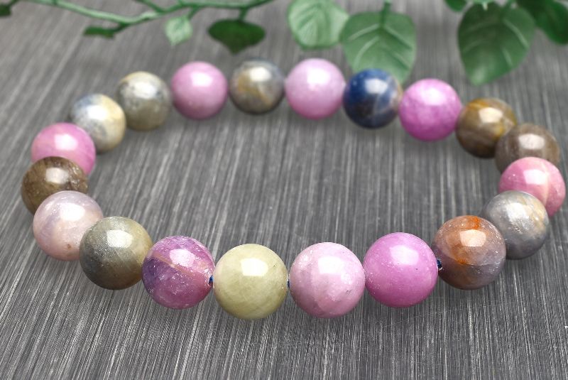 【1点物】天然非加熱 MIXサファイア(コランダム) 10.5mm ブレスレット _U7504