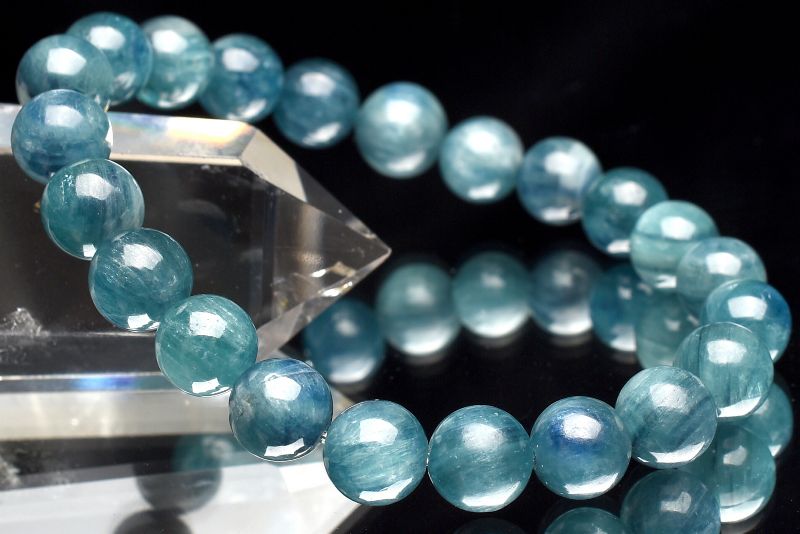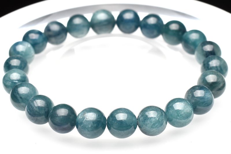 【1点物】高品質天然色◇グリーンブルー ブルーグリーンカイヤナイト 8mm ブレスレット _U7516