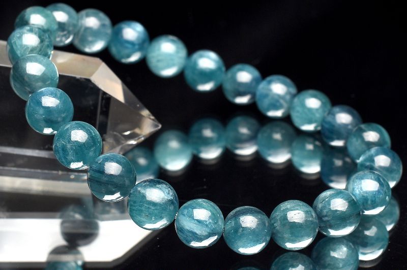 【1点物】高品質天然色◇グリーンブルー ブルーグリーンカイヤナイト 8mm ブレスレット _U7517