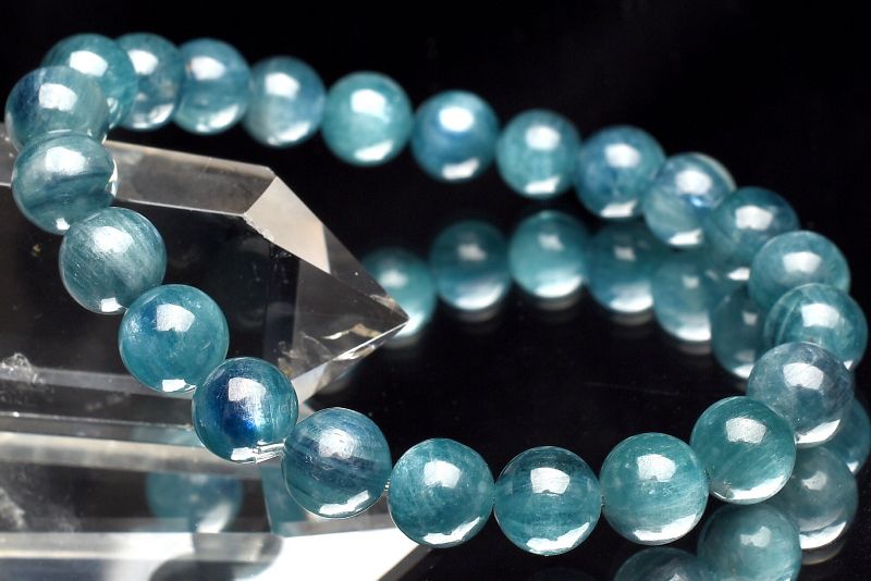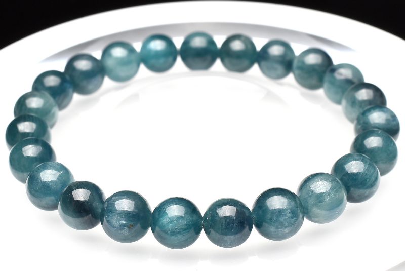 【1点物】高品質天然色◇グリーンブルー ブルーグリーンカイヤナイト 8mm ブレスレット _U7518