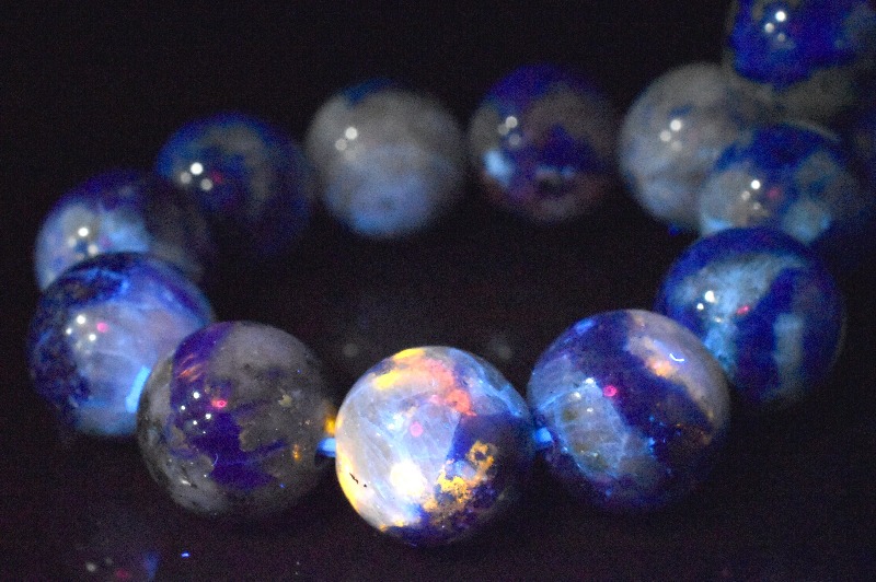 同じファトクロミズムの特徴をもつ石たちの中でも、ハックマナイトは紫外線を当ててから一定時間変色が持続するという珍しい性質があり、コレクターの間でも高い人気を誇ってます。
