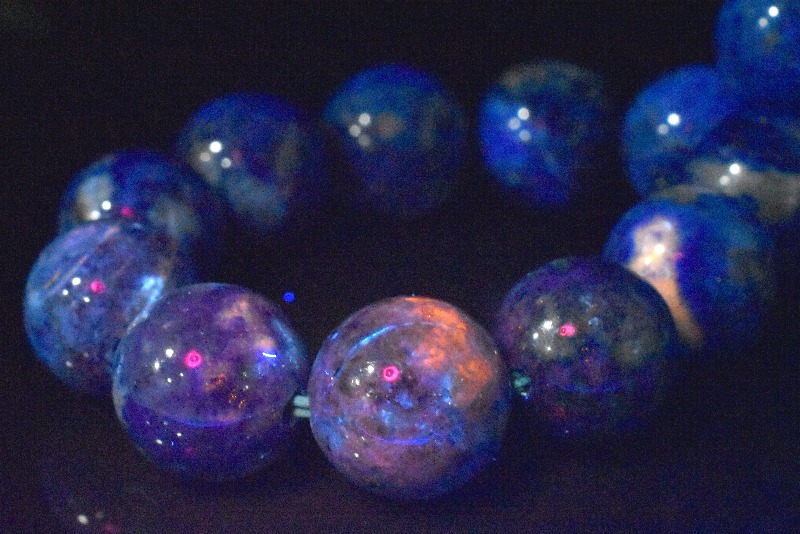 同じファトクロミズムの特徴をもつ石たちの中でも、ハックマナイトは紫外線を当ててから一定時間変色が持続するという珍しい性質があり、コレクターの間でも高い人気を誇ってます。