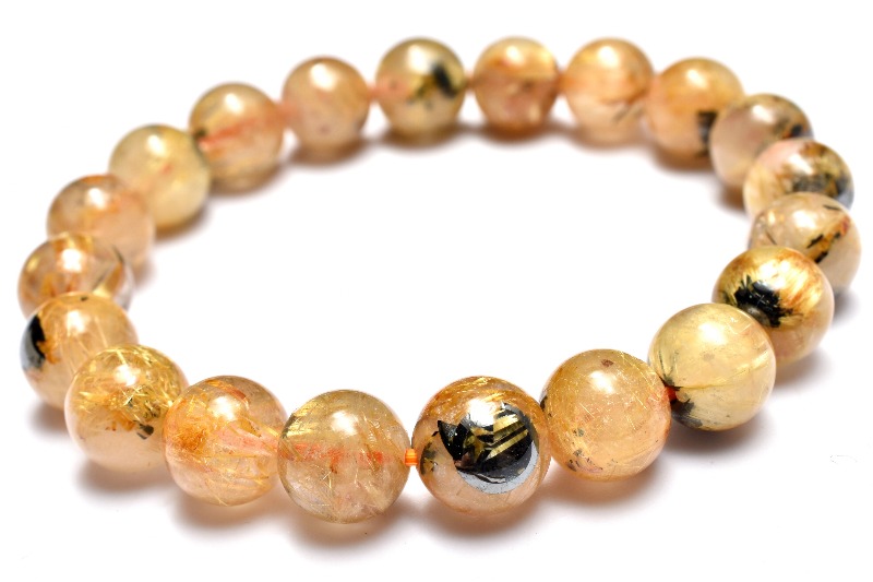 材質ヘマタイトインタイチンルチルクォーツ 8.5mm 産地:ブラジル