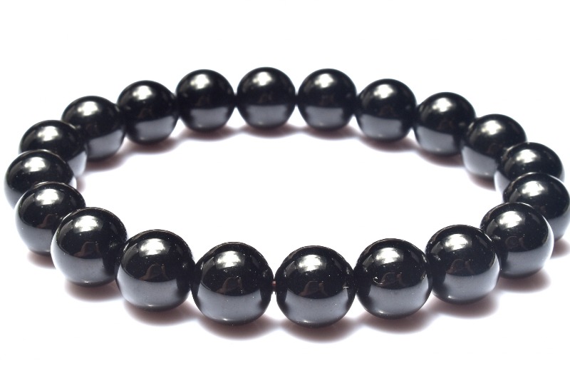 【1点物】希少レア テクタイト黒隕石 9.5mm ブレスレット _MA9385