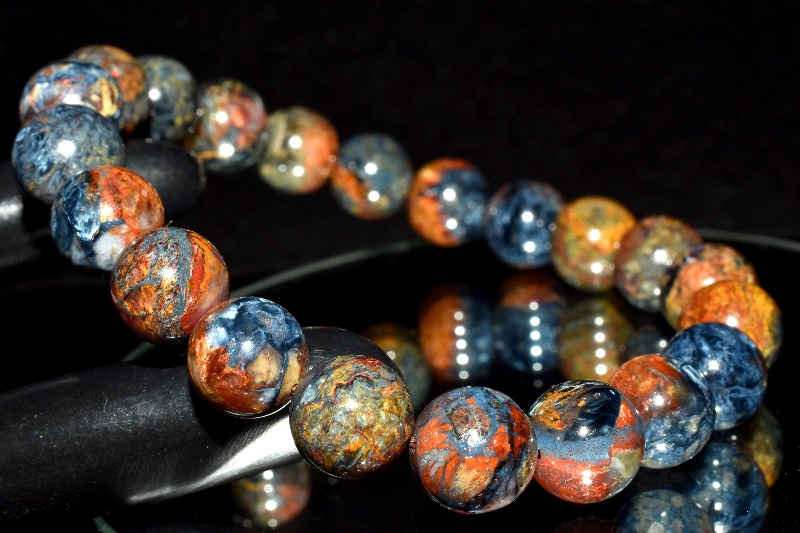 一般的にはタイガーアイ系の茶褐色が多いですが、ブルータイガーの青系もあり、茶と青の混じったものもあります。