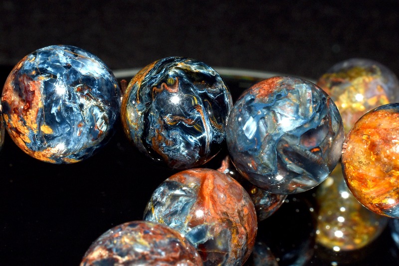 一般的にはタイガーアイ系の茶褐色が多いですが、ブルータイガーの青系もあり、茶と青の混じったものもあります。