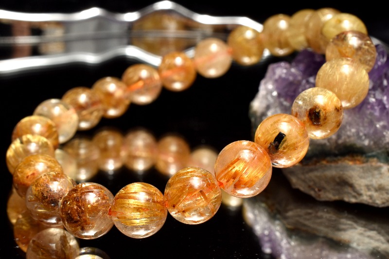 材質ゴールドタイチンルチルクォーツ 8mm 産地:ブラジル