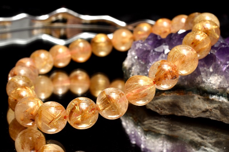 材質ゴールドタイチンルチルクォーツ 8.5mm 産地:ブラジル