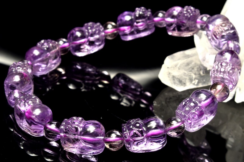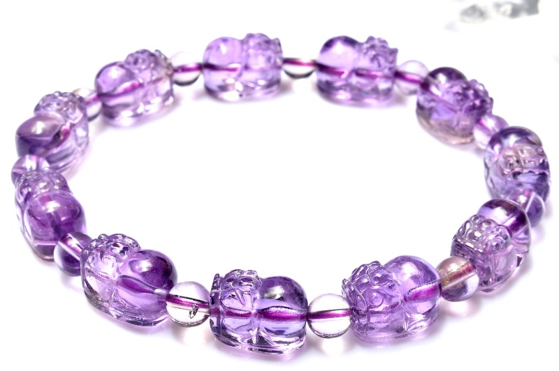 【1点物】繊細彫刻 アメトリン 12x8(丸玉5.5)mm 貔貅彫刻 ブレスレット _MA9463