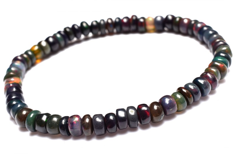 【1点物】AA☆エチオピア産 ブラックプレシャスオパール 2-4x4.5-5.5mm ボタン ブレスレット _MA9499
