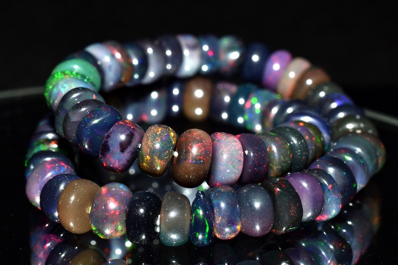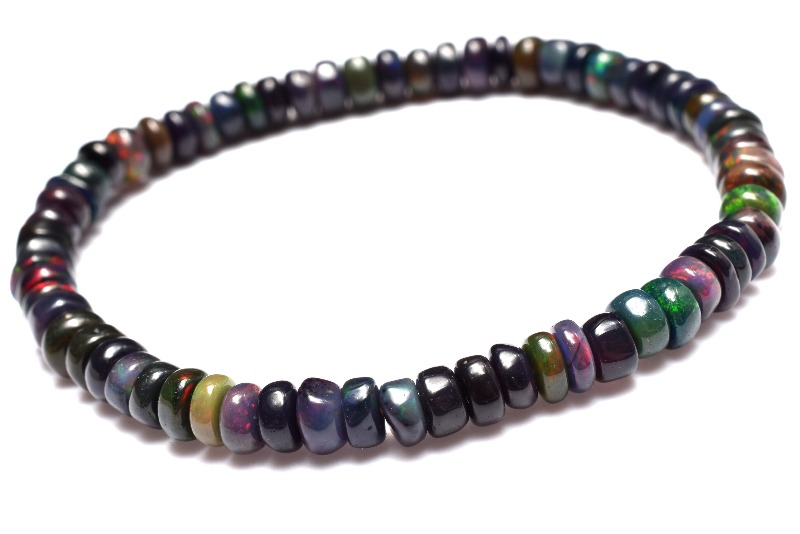 【1点物】AA☆エチオピア産 ブラックプレシャスオパール 2-3x5mm ボタン ブレスレット _MA9502