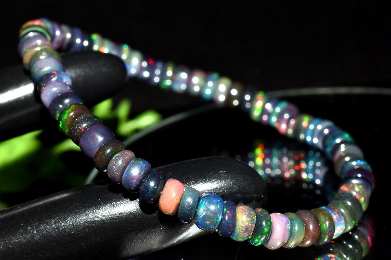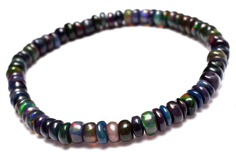 【1点物】AA☆エチオピア産 ブラックプレシャスオパール 2-3x5-5.5mm ボタン ブレスレット _MA9506
