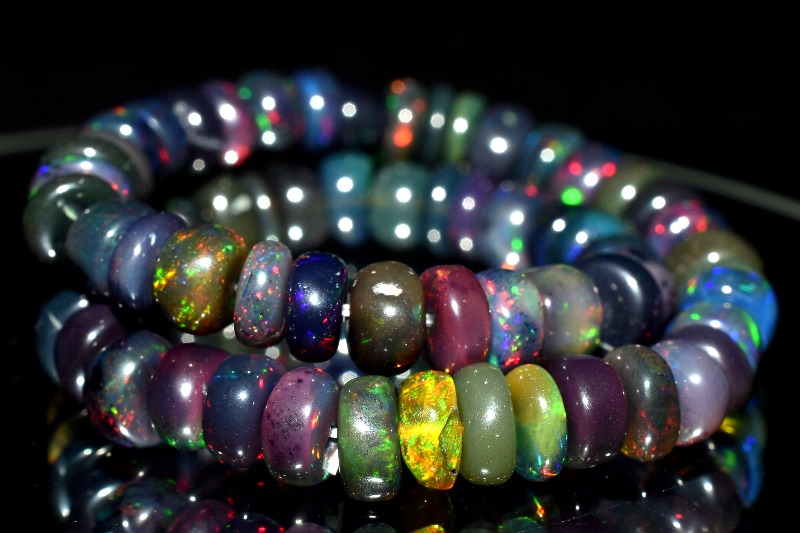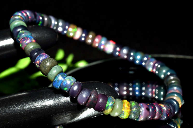 【1点物】AA☆エチオピア産 ブラックプレシャスオパール 2-3.5x5-5.5mm ボタン ブレスレット _MA9507