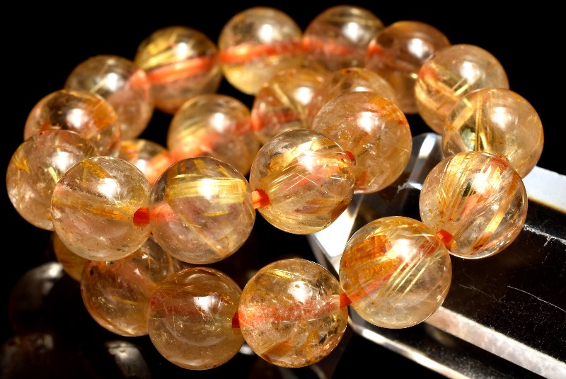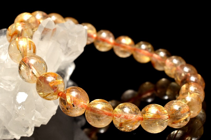 材質ゴールドタイチンルチルクォーツ 8mm 産地:ブラジル