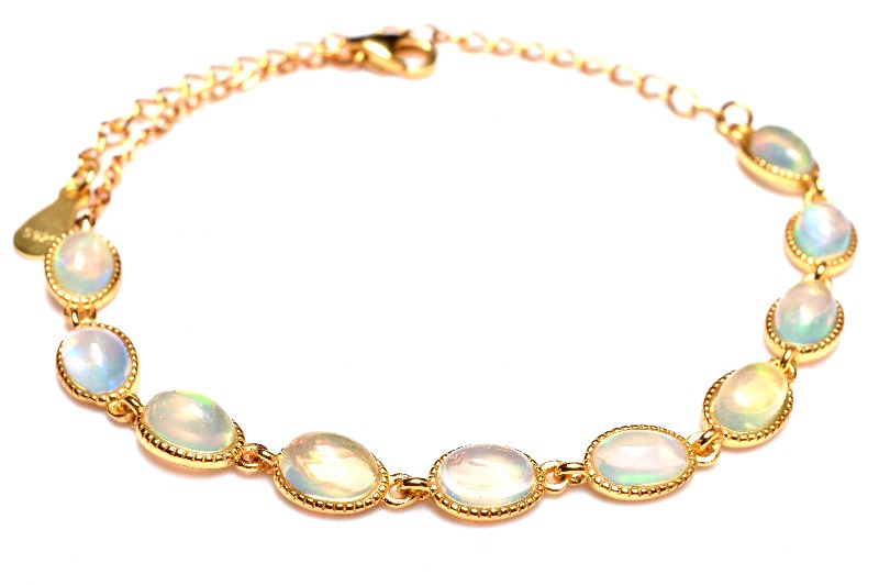 【1点物】AAAA☆エチオピア産 Silver925 プレシャスオパール 6x4mm アジャスター付き長さ調整可能 ブレスレット _MA9557