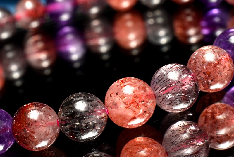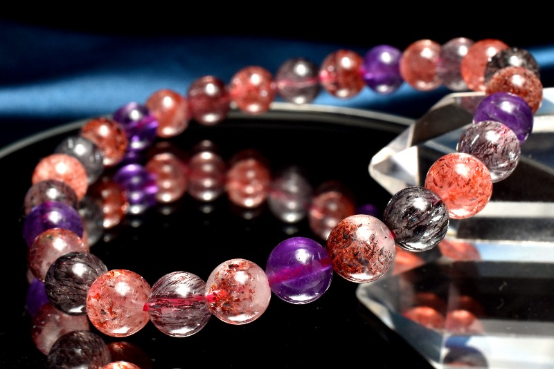 一般的に流通しているスーパーセブンは、上記の7つの鉱物を全て含んでいるものは非常に希少で、多くは原石の段階で7つの鉱物を全て含有しているものをカットや加工した石をスーパーセブンと呼んでいます。