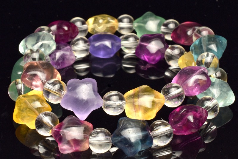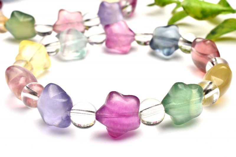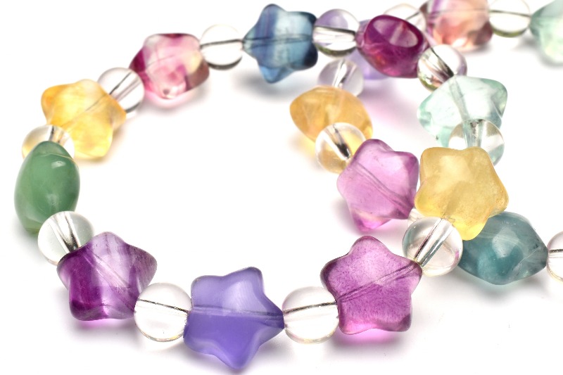 マルチカラー フローライト 13-14x14mm 星彫刻 ブレスレット 1個売り _BG6029
