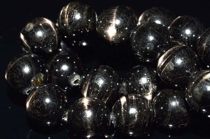 黒色の石の中に白色から桃色のシラー(光効果)が浮かび上がる美しい天然石です。