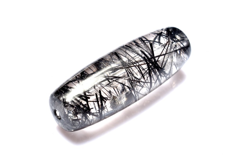材質ブラックトルマリンインクォーツ 25x9mm 産地:ブラジル
