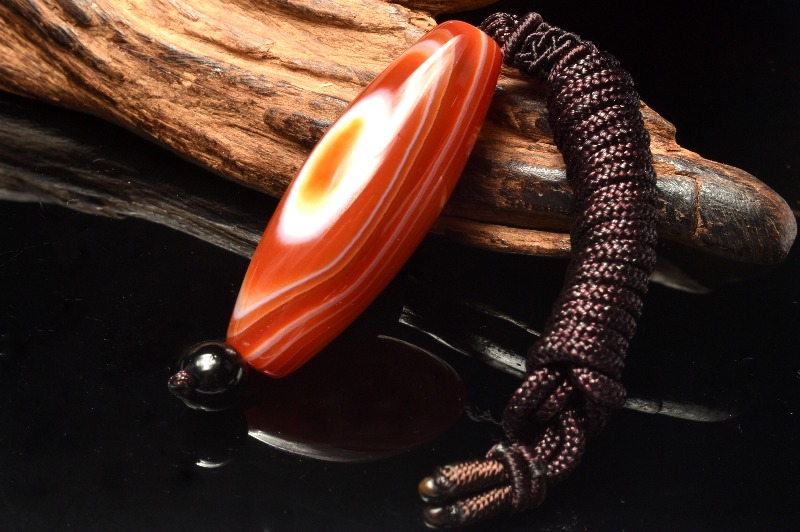 眼の模様が入った部分の原石を切り出し作られた天然の天珠です。