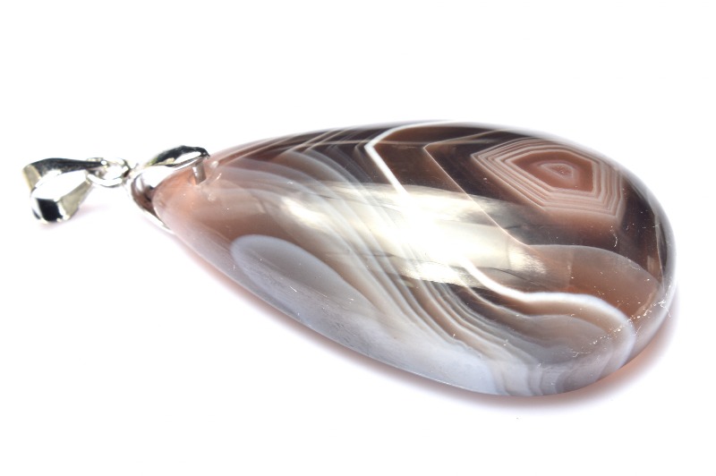 ほんのりとした透明感のある地石に美しい縞模様(しまもよう)が見られるのが、ボツワナアゲートの特徴です。同じ縞瑪瑙の仲間には、ブルーレースアゲート、サードオニキス、天眼石などがあります。