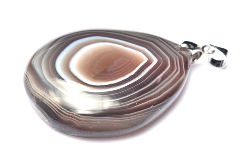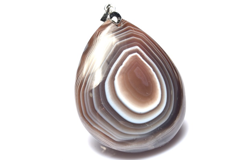 ほんのりとした透明感のある地石に美しい縞模様(しまもよう)が見られるのが、ボツワナアゲートの特徴です。同じ縞瑪瑙の仲間には、ブルーレースアゲート、サードオニキス、天眼石などがあります。