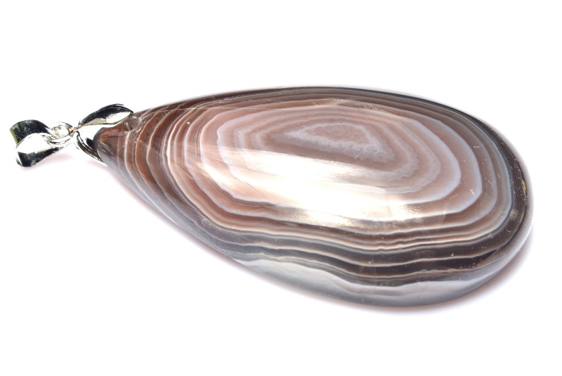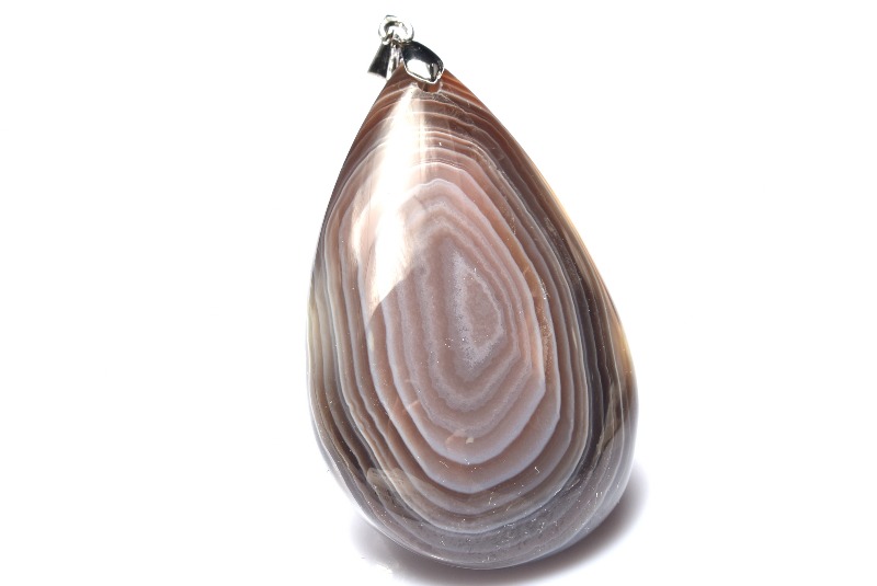 ほんのりとした透明感のある地石に美しい縞模様(しまもよう)が見られるのが、ボツワナアゲートの特徴です。同じ縞瑪瑙の仲間には、ブルーレースアゲート、サードオニキス、天眼石などがあります。