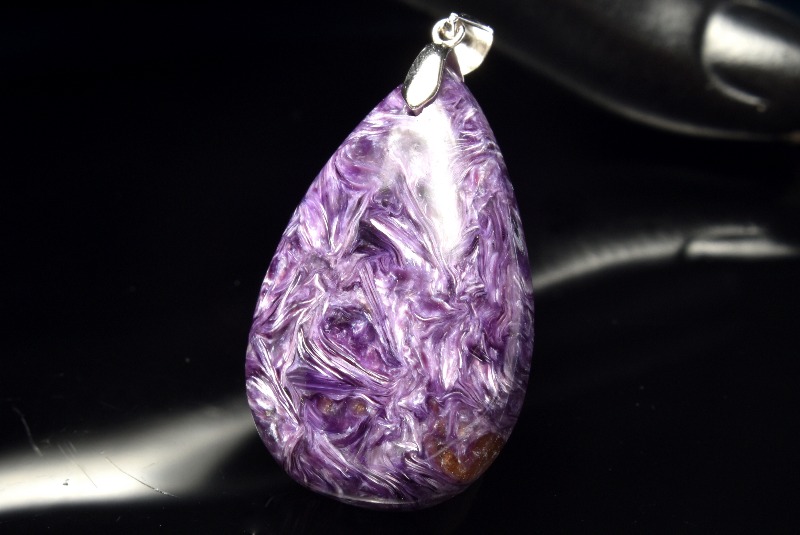 チャロアイトという名前の由来には、シベリアのチャロ川流域で発見された事とする説と、ロシア語の(Charo魅惑)から名づけられたという説がありますが、後者の方が有力であるとされています。その名の通り、この石の個性的な模様は、見る人を魅了してやみません。まさに、「魅惑の宝石」にぴったりな石です。