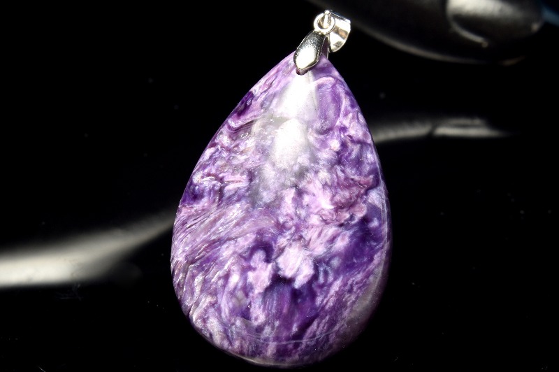 チャロアイトという名前の由来には、シベリアのチャロ川流域で発見された事とする説と、ロシア語の(Charo魅惑)から名づけられたという説がありますが、後者の方が有力であるとされています。その名の通り、この石の個性的な模様は、見る人を魅了してやみません。まさに、「魅惑の宝石」にぴったりな石です。