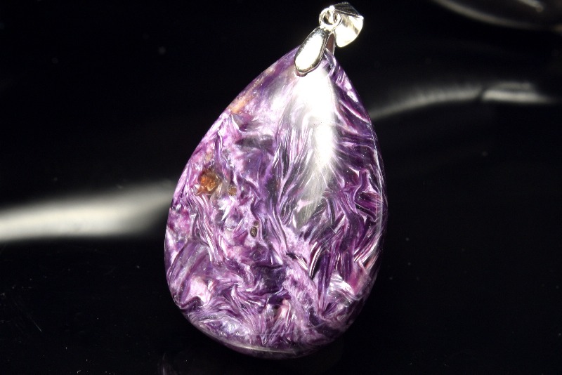 チャロアイトという名前の由来には、シベリアのチャロ川流域で発見された事とする説と、ロシア語の(Charo魅惑)から名づけられたという説がありますが、後者の方が有力であるとされています。その名の通り、この石の個性的な模様は、見る人を魅了してやみません。まさに、「魅惑の宝石」にぴったりな石です。