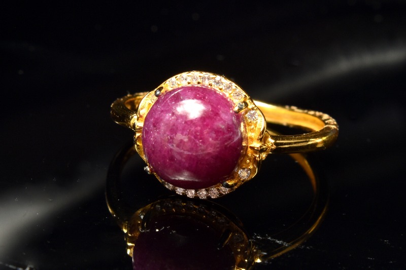 ルビーは、コランダムという鉱物のグループのダイヤモンド(硬度10)の次に硬い鉱物(硬度9)で、赤いものをルビー、青いものをサファイアと呼びます。