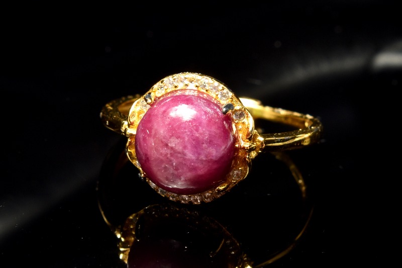 ルビーは、コランダムという鉱物のグループのダイヤモンド(硬度10)の次に硬い鉱物(硬度9)で、赤いものをルビー、青いものをサファイアと呼びます。