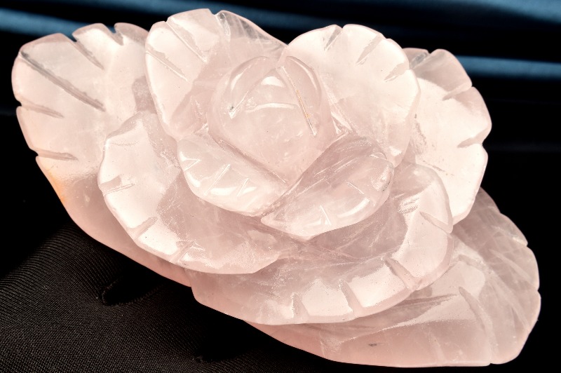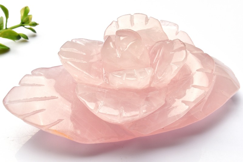 【1点物】繊細彫刻 ローズクォーツ 122x73x45mm 花彫刻 置物 _CG6682【宅急便のみ】