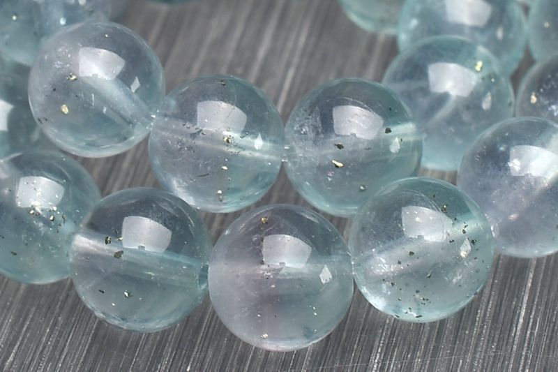 特徴・意味透明度の高い淡いブルーのフローライトに星々のようにキラキラ輝くパイライトが内包された幻想的で美しいブレスレットです。