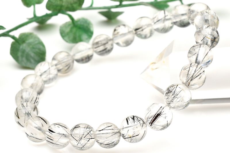 材質ブラックトルマリンインクォーツ 8mm 産地:ブラジル