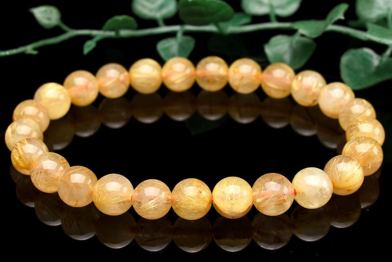 【1点物】満杯内包 ゴールドルチルクォーツ 7.5mm ブレスレット _U7581
