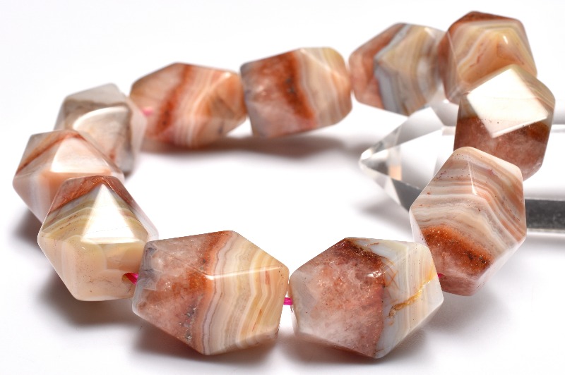 縞模様の色や形によって、瑪瑙化木、景観瑪瑙、苔瑪瑙、オニックスの5種類に分けられます。
