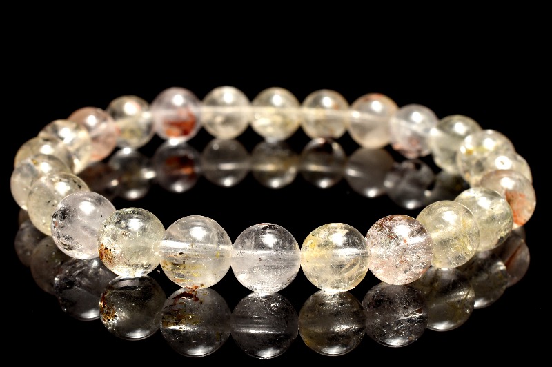 【1点物】希少◇ライモナイト入り オイルインクォーツ(石油入り水晶) 8mm ブレスレット _MA9680