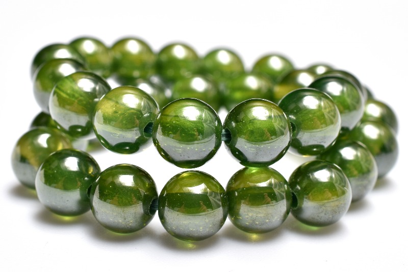 高発色グリーンに、光を当てると美しいスター効果が楽しめる人気の合成石です。