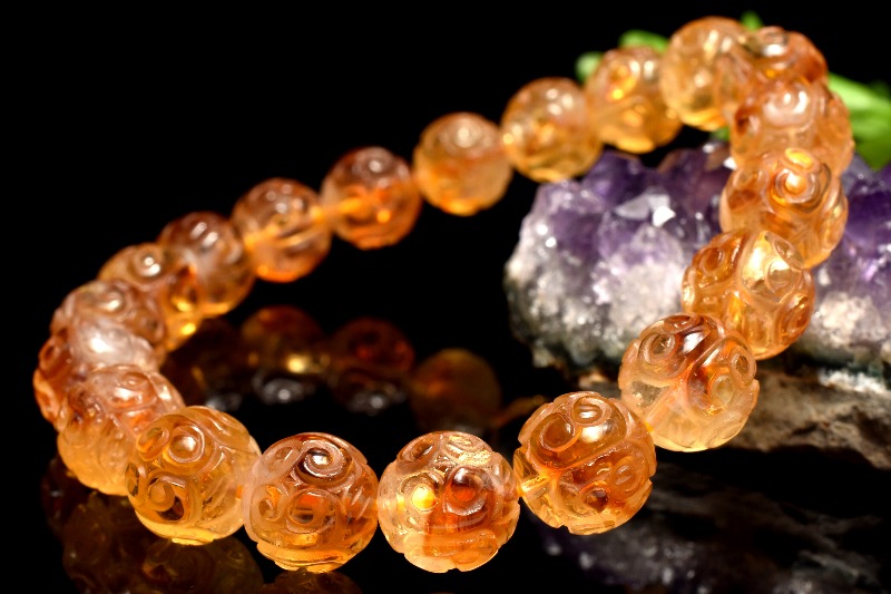 【1点物】濃いビタミンカラー ファントムシトリン 10mm マニ車 ブレスレット _MA9746