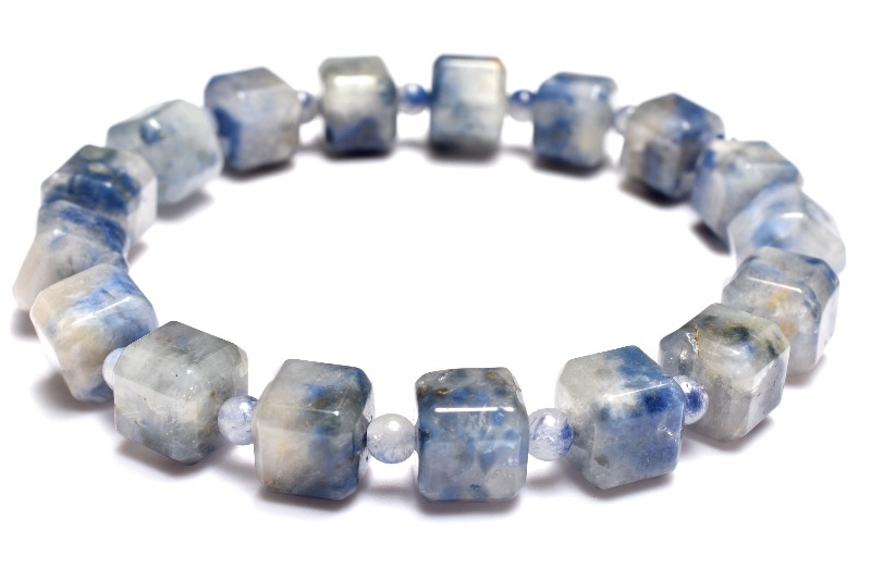 【1点物】希少形状 デュモルチェライトインクォーツ 8(丸玉3.5)mm キューブ ブレスレット _MA9791