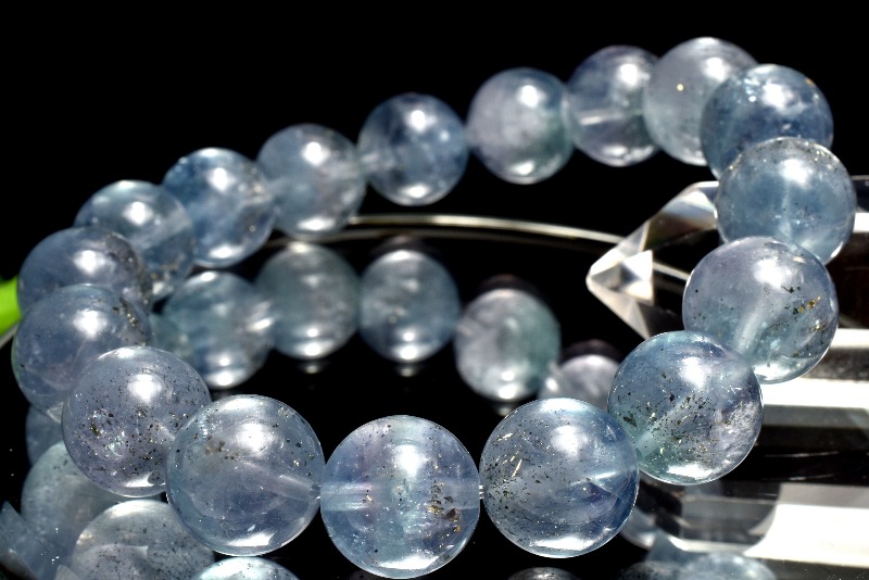 特徴・意味透明度の高い淡いブルーのフローライトに星々のようにキラキラ輝くパイライトが内包された幻想的で美しいブレスレットです。