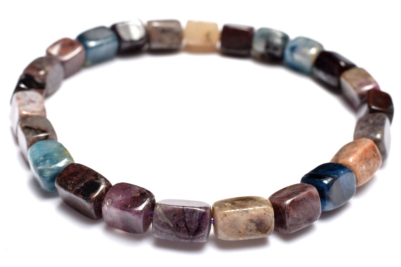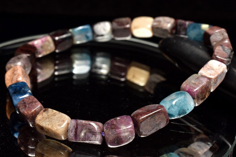 【1点物】紫の濃淡が織りなす上級の美 スギライト(杉石) 7-8x5.5mm チューブカット ブレスレット _MA9853