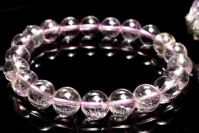 【1点物】透明繊維状クラック◇無垢 クンツァイト 9mm ブレスレット _MA9866